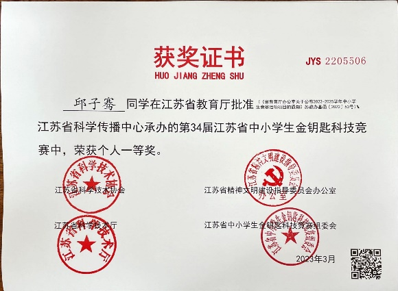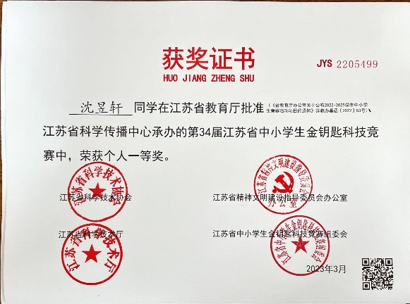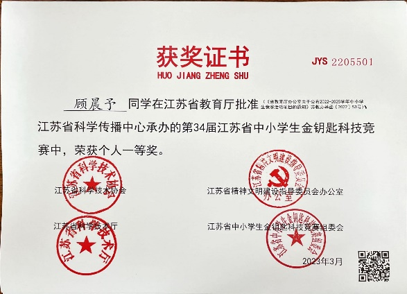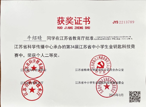 我校在江苏省第三十四届金钥匙科技竞赛中获奖