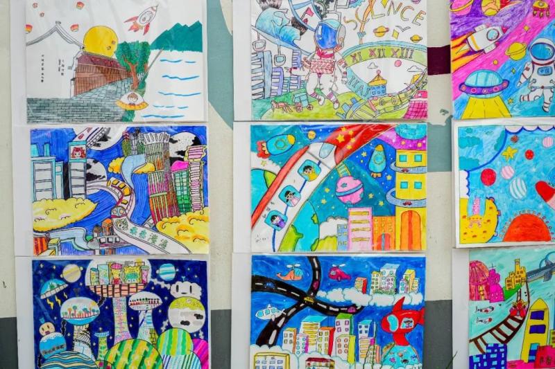 本次科创绘画主题“未来·创新·生活”。同学们结合所见所闻、运用发展的观点看待世界,用梦想之笔描画明天。他们的作品让人感受到自主学习、科学探究的巨大乐趣。一张张科幻画,描绘出同学们对“科技创造未来”的美好憧憬,跳动着少年们缤纷的幻想。