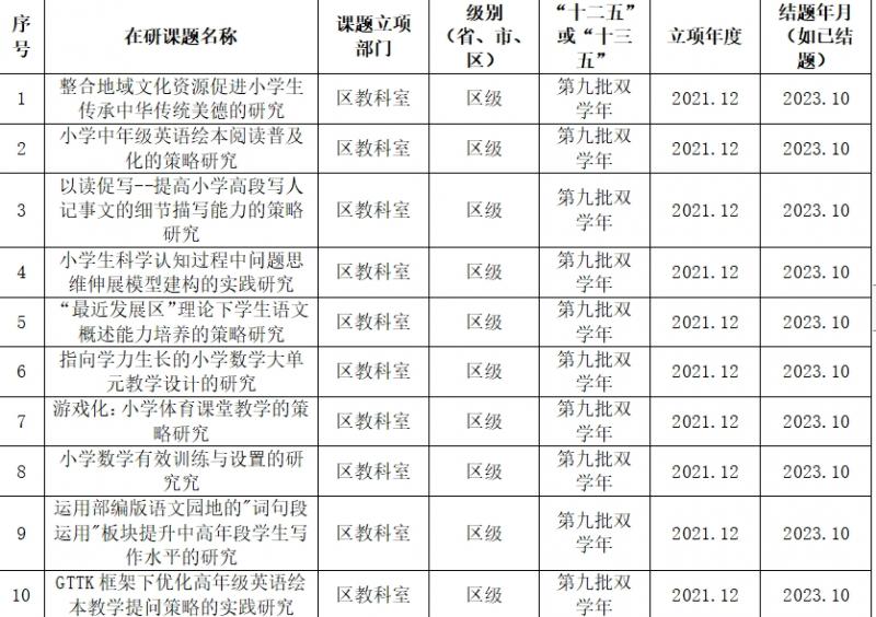 吴江区第九批双学年课题七都小学成功立项21个,全部成功结题。