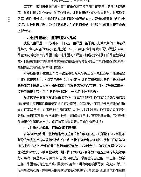 吴江区七都小学教科工作总结 (2023—2024学年第一学期)