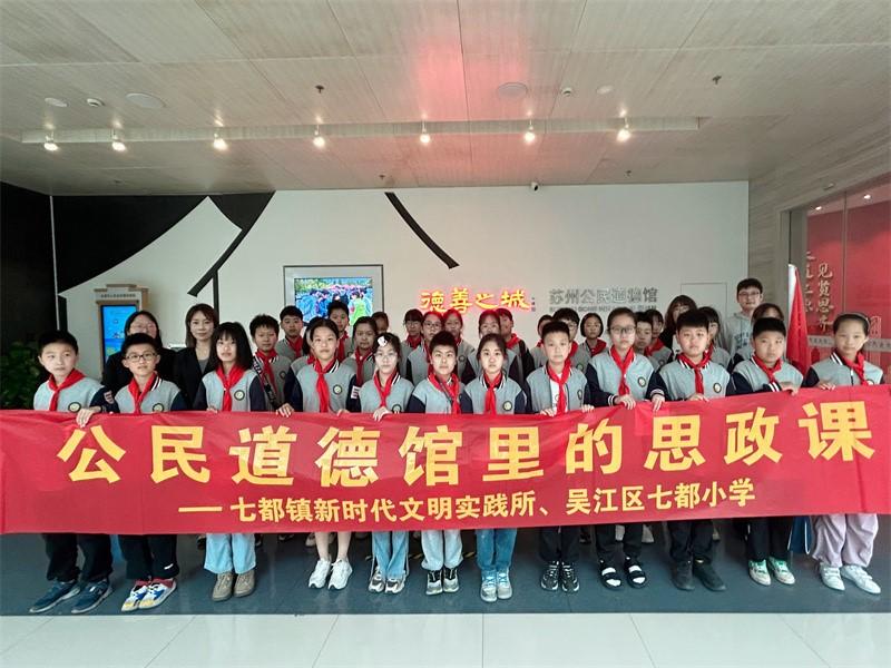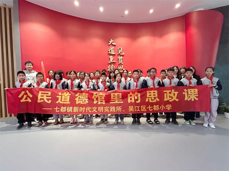 习近平总书记在学校思想政治理论课教师座谈会上强调,“要高度重视思政课的实践性,把思政小课堂同社会大课堂结合起来,在理论和实践的结合中,教育引导学生把人生抱负落实到脚踏实地的实际行动中来,把学习奋斗的具体目标同民族复兴的伟大目标结合起来,立鸿鹄志,做奋斗者”。4月26日,吴江区七都小学党支部部分党员教师及学校五年级大队委们一起走进苏州公民道德馆,现场开展思政课实践教学,感受“德”之力。