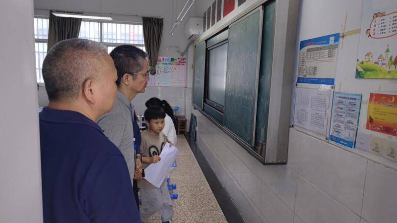 在张校和王主任的陪同下,对班级课程表、作息时间表等进行检查。通过交谈了解学校各方面发展情况,反过来也在向两位督学“取经”。