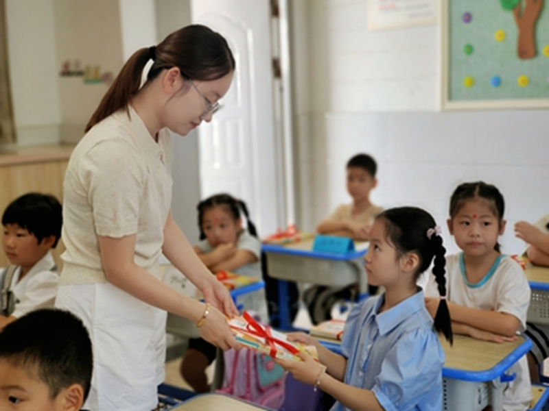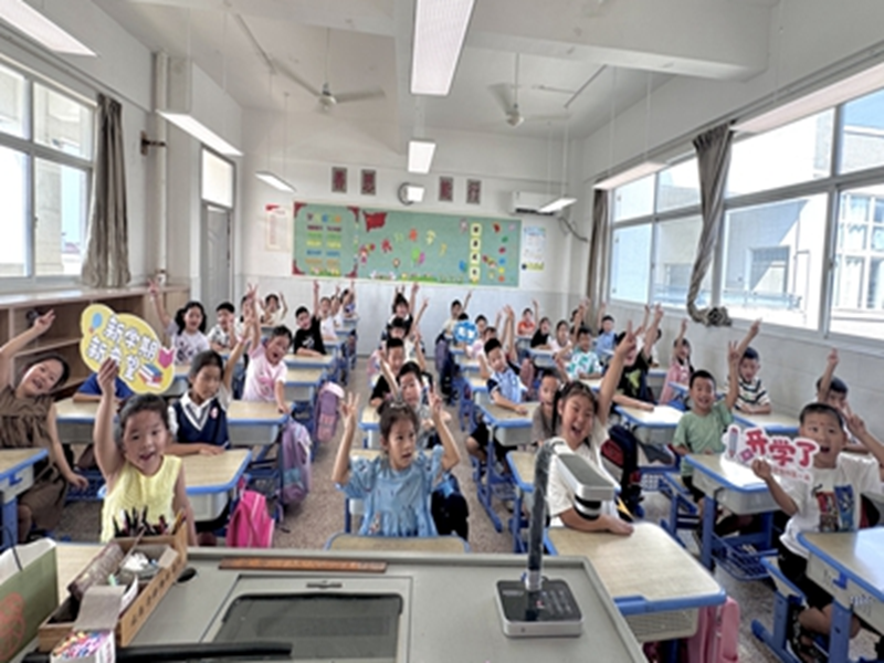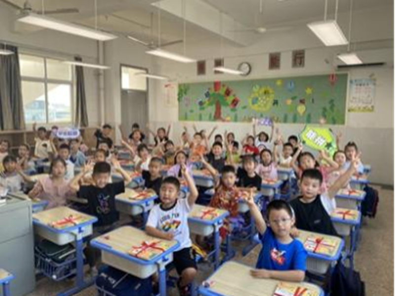 新书启航,红丝带系成的蝴蝶结环抱着新书,整齐地摆放在每一位小萌新的课桌上。同学们怀揣着激动、好奇的心情,捧起书本,开启小学生活之旅。