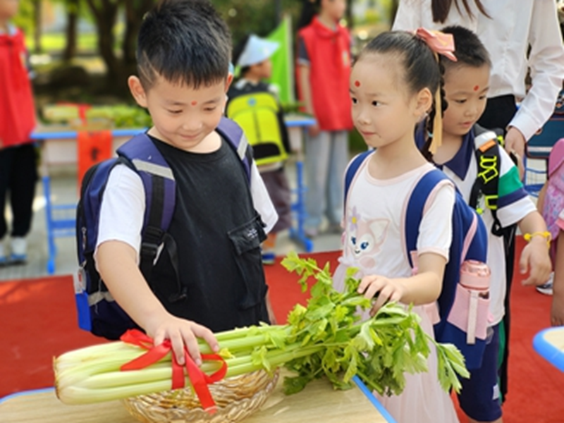 入学摸蔬果,用爱送祝福。每种蔬果都蕴藏着老师们对新生的浓浓爱意和深深祝福。伸出稚嫩的小手摸一摸,把幸福的好彩头统统收下吧!