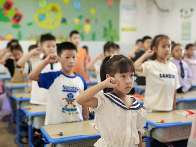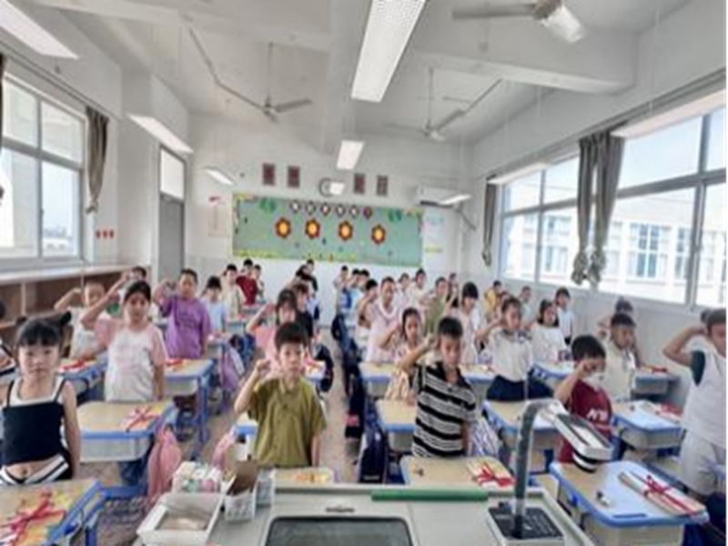 五星红旗下,童声嘹亮。同学们高举右拳,庄严宣誓,闪烁的小眼睛里透着坚定,用稚嫩的声音许下对未来的承诺。