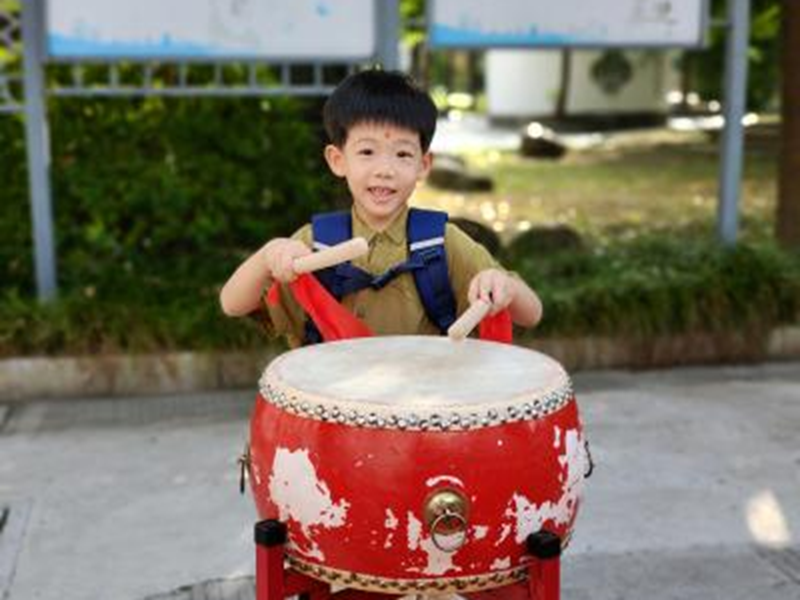 “击鼓”有振奋人心的作用,孩子们通过敲击打鼓的声响来表达内心的激动和兴奋。新的起点,新的开始。以鼓鸣志,以鼓励志。愿新生勤奋上进,实现大志。