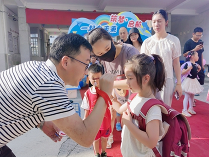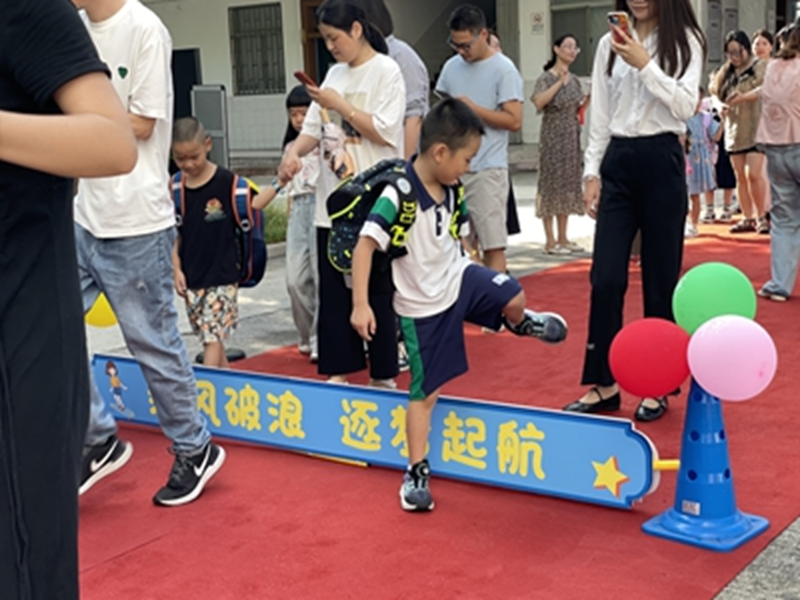在爸爸妈妈的陪同下,小小弄潮儿们依次跨过象征着有梦、敢行、能拼、健康、快乐、友爱等不同优秀品质的栏杆,开启人生新篇章。
