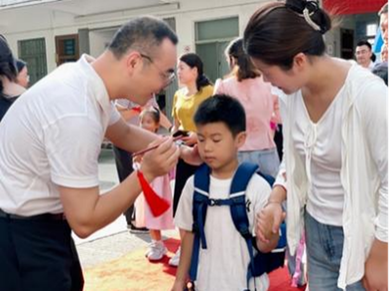 “痣”与“智”同音,朱砂启智,意为开启智慧之门。校领导们带着微笑,亲切地在孩子们的额头正中点上红痣以此寄托美好的祝愿,激励孩子们勤奋学习。
