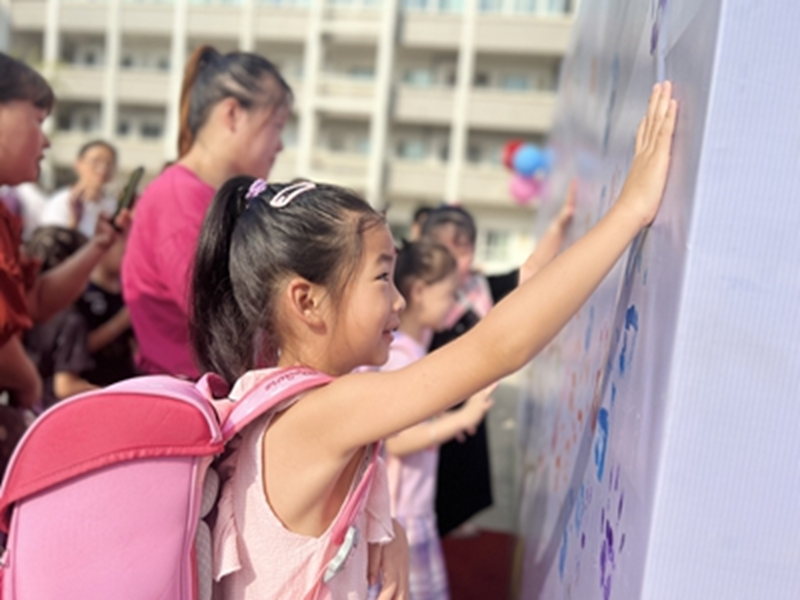 “咔嚓”孩子们兴奋地来到背景墙打卡,拍照留念。一张张天真可爱的笑脸,一张张记录美好开端的照片,在清晨阳光的祝福下,闪耀着明媚的光芒。
