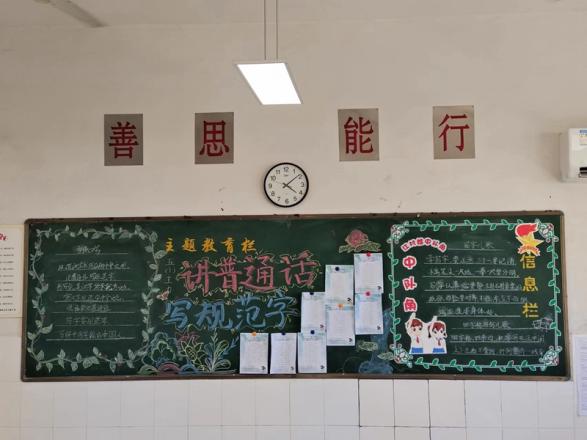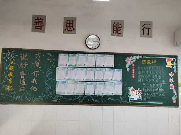 在推普周期间,同学们通过黑板报宣传,在力所能及的范围内积极推广普通话。同时,同学们一笔一画书写最美中国字,展现弄潮儿风采。希望能够有更多的人参与到说好普通话、写好中国字的队伍中,为推广和规范使用国家通用文字贡献自己的一份小小力量!