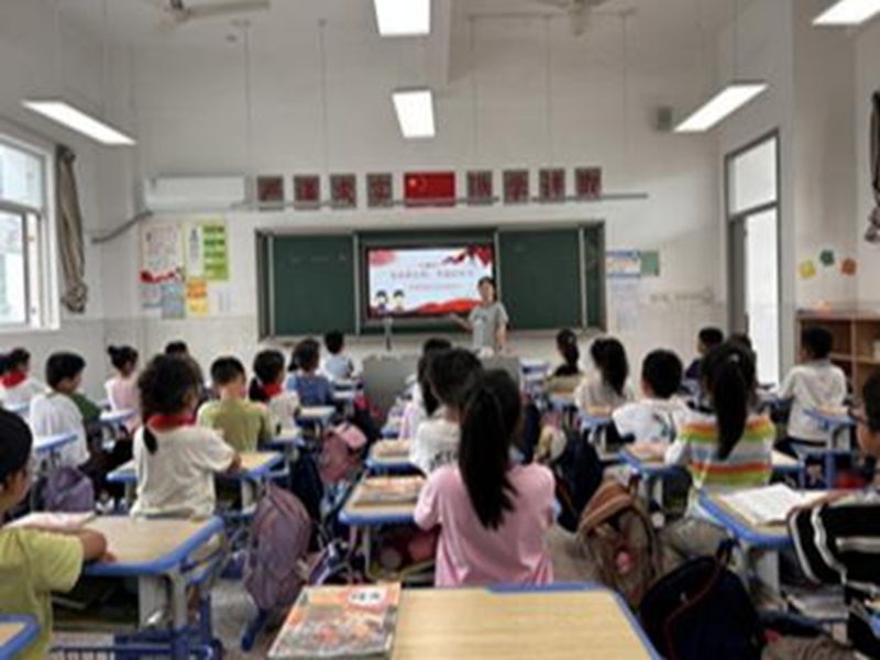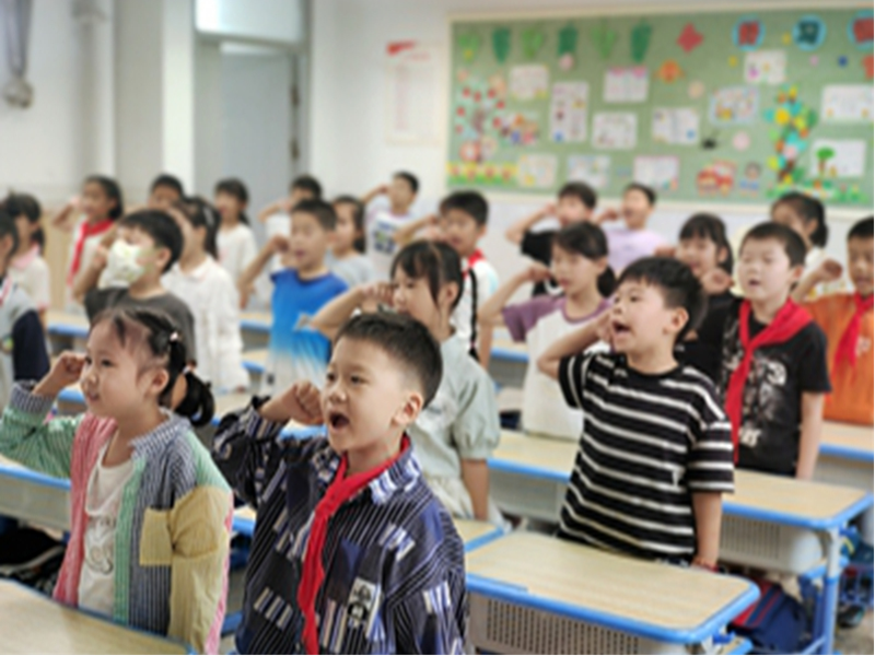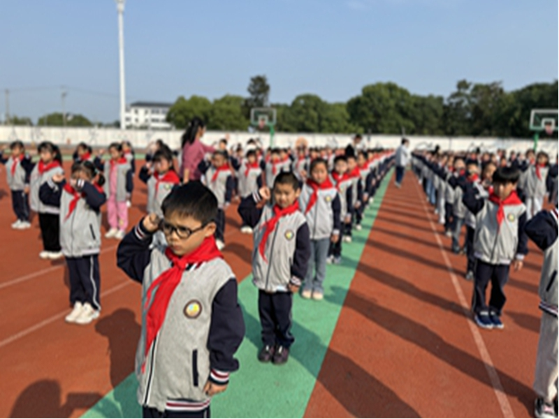 伴随着激昂的少先队出旗曲,大队旗手和护旗手庄严入场,拉开了仪式的序幕。在那一刻,神圣的荣誉感从每一名同学的心底升腾而起,全体同学肃然起敬。少先队员们齐唱《中国少年先锋队队歌》,嘹亮的歌声回荡在校园上空,每一个音符都跳跃着对祖国的热爱和对美好未来的向往。