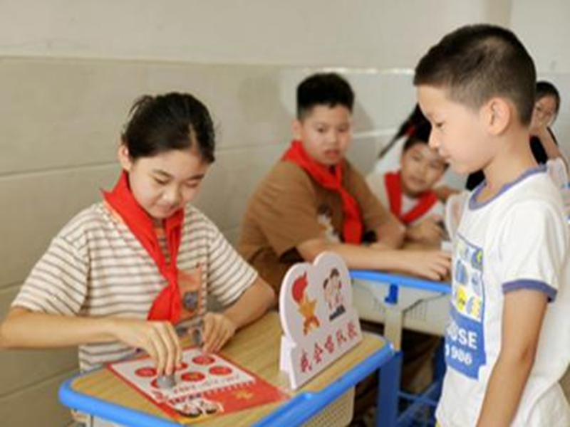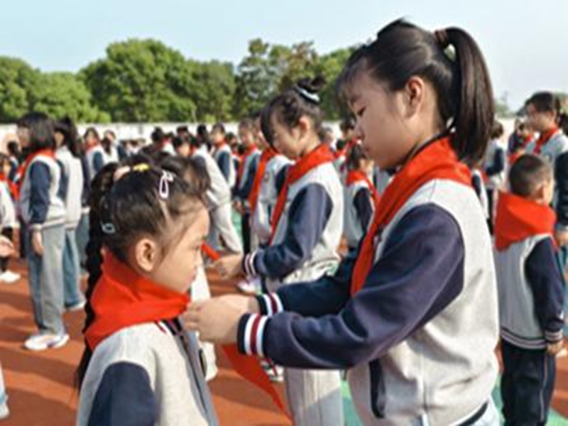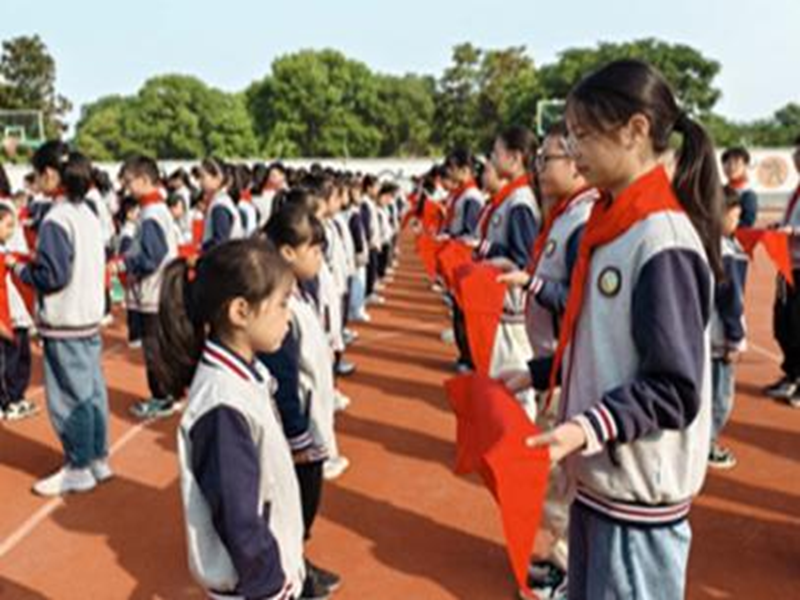 星星火炬,代代相传。六年级的优秀少先队员亲手为新队员系上了鲜艳的红领巾,这不仅是一个简单的动作,更是责任与梦想的传递。每一条红领巾都承载着前辈们的期望与鼓励,激励着新队员们在成长的道路上勇往直前。