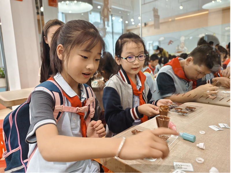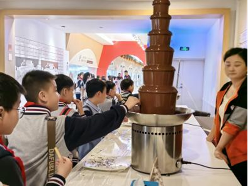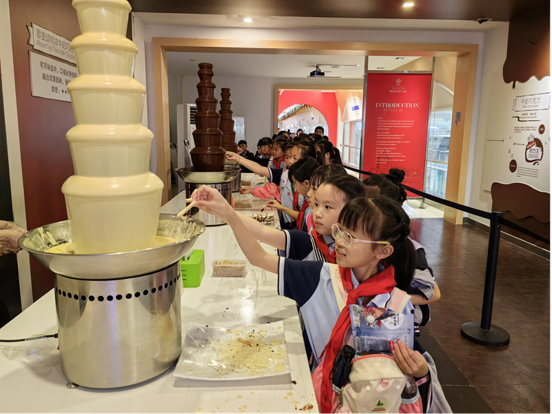 参观巧克力工厂时,队员们免费品尝了美味的巧克力原浆和各种各样的巧克力,都能做到有序试吃,不浪费食物,不大声喧哗,吃完后主动将垃圾扔进垃圾桶,在大家的环保意识让景区的就餐环境更加整洁。