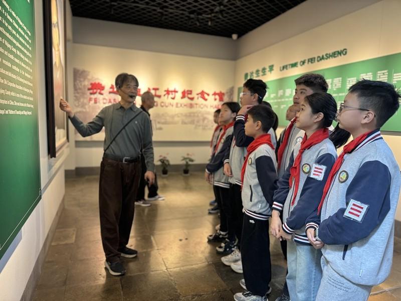 在解说员周老师的带领下,队员们接着走进另一处展馆,去探究著名社会学家、人类学家费孝通那极富传奇色彩的一生。“费老与开弦弓村有着非常深厚的情谊,先后考察开弦弓村多达26次,亲身见证了这个江南村落发展的点点滴滴”,解说员周老师如是说。从一张张历史旧照中,队员们看到一位社会学家不离基层的身影。
