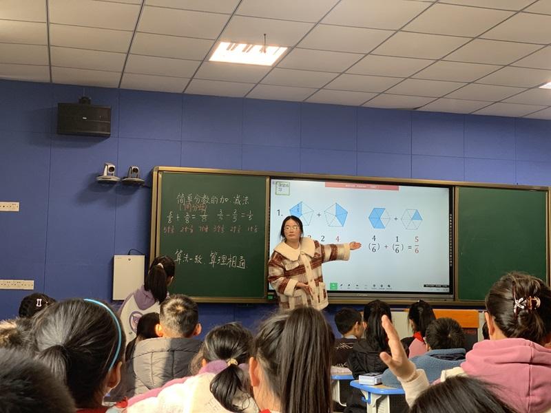 在集体研讨的基础上,孙颖老师重新设计了《简单的分数加减法》的教学方案,并进行了第二次教学。第二次教学中,教师更加注重与学生的互动,采用了更多样化的教学手段,课堂氛围更加活跃。