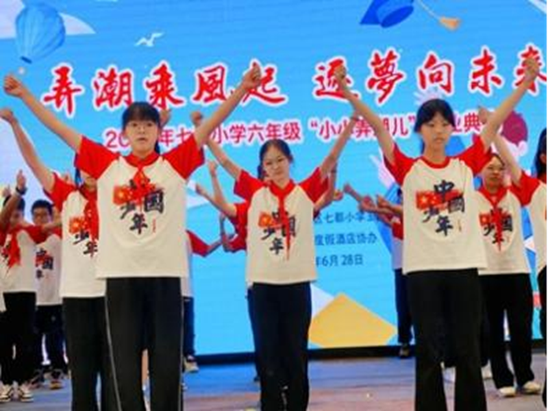 在七都小学的六年,我们树立了自信,懂得了感恩,学会了做人。活动尾声,同学们全体起立,右手握拳,庄严宣誓。今日我以母校为荣,明日母校以我为傲!坚定的语言掷地有声,响彻云霄。