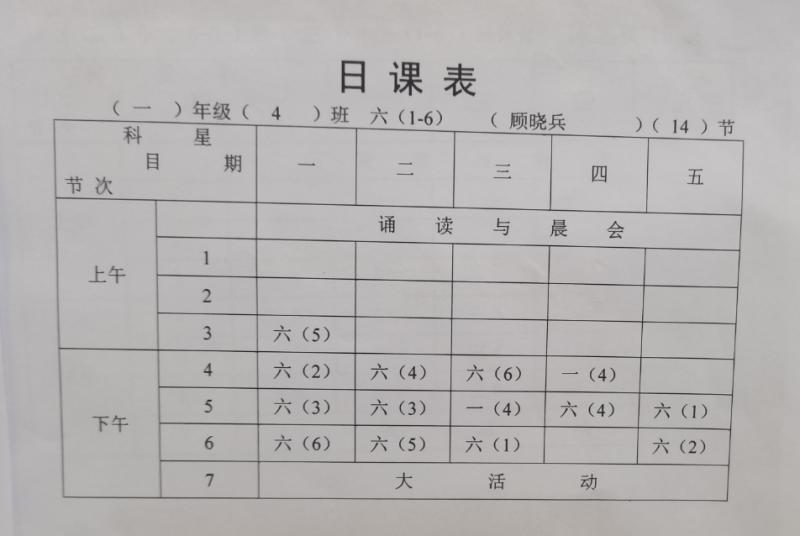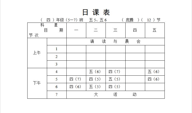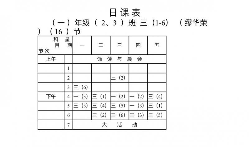 七都小学体育学科日课表