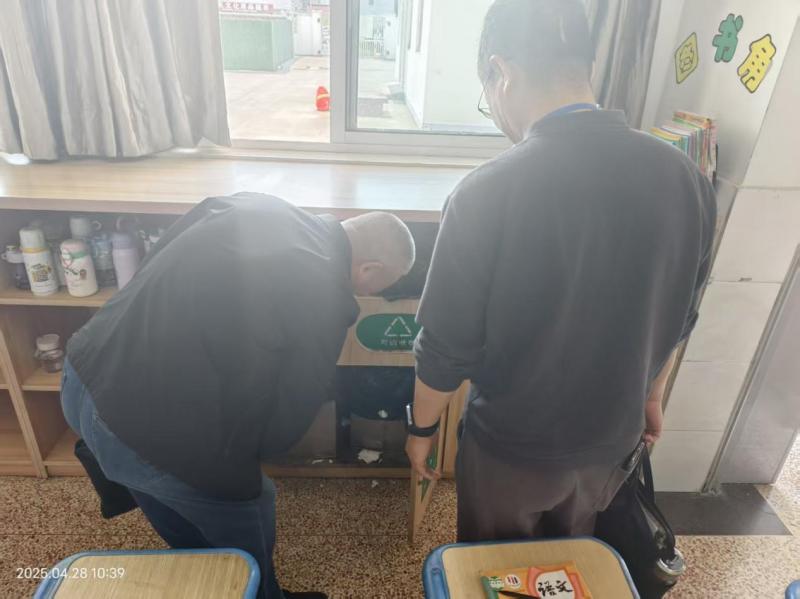 督学深入班级教室,查看常态规范执行情况。重点检查了班级垃圾分类落实情况。督学指出“垃圾分而置之,利于分而治之”,要求学校持续加强垃圾分类知识普及与环境意识培养。建议积极开展如“垃圾分类小达人”评选等形式多样的主题实践活动,激发学生参与热情,提升精准分类能力,培养良好习惯。