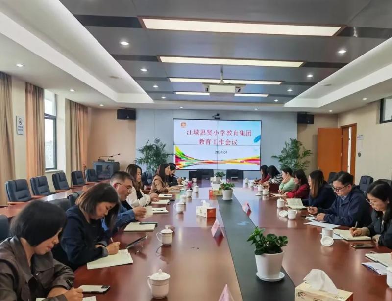 人间四月,春光旖旎。为进一步落实以集团为单位进行阅读课程建设及成果展示,推进集团化办学,2024年4月2日下午,“江城思贤教育集团专题工作会议”在思贤实小汇贤楼四楼会议室顺利召开。活动由思贤实验小学姚卫芳副校长主持,集团校各分管校长和分管中层出席了本次活动。