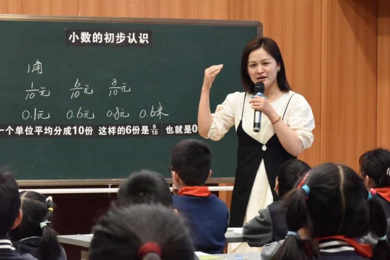 4月8日,课题组成员沈建平老师执教三下《小数的初步认识》。沈老师紧扣课题,从真实的生活情境“溇港爱心义卖”出发,通过猜橡皮价格等活动,唤醒学生的生活经验,搭建小数的认识支架,借助元与角之间的十进制关系,结合多元的表征方式,引导学生逐步理解一位小数的含义,从具体到抽象地学会表征小数,并在教学中渗透七都义卖助学的优秀文化传统,让学生的数学认知与文化认同感同步生长。